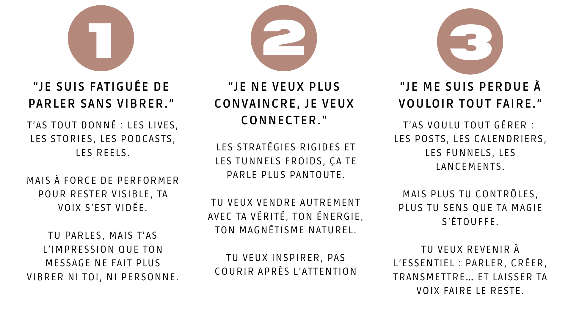 → Tu arrêtes d’improviser ta visibilité, tu commences à piloter ta voix comme un vrai système d’attraction.